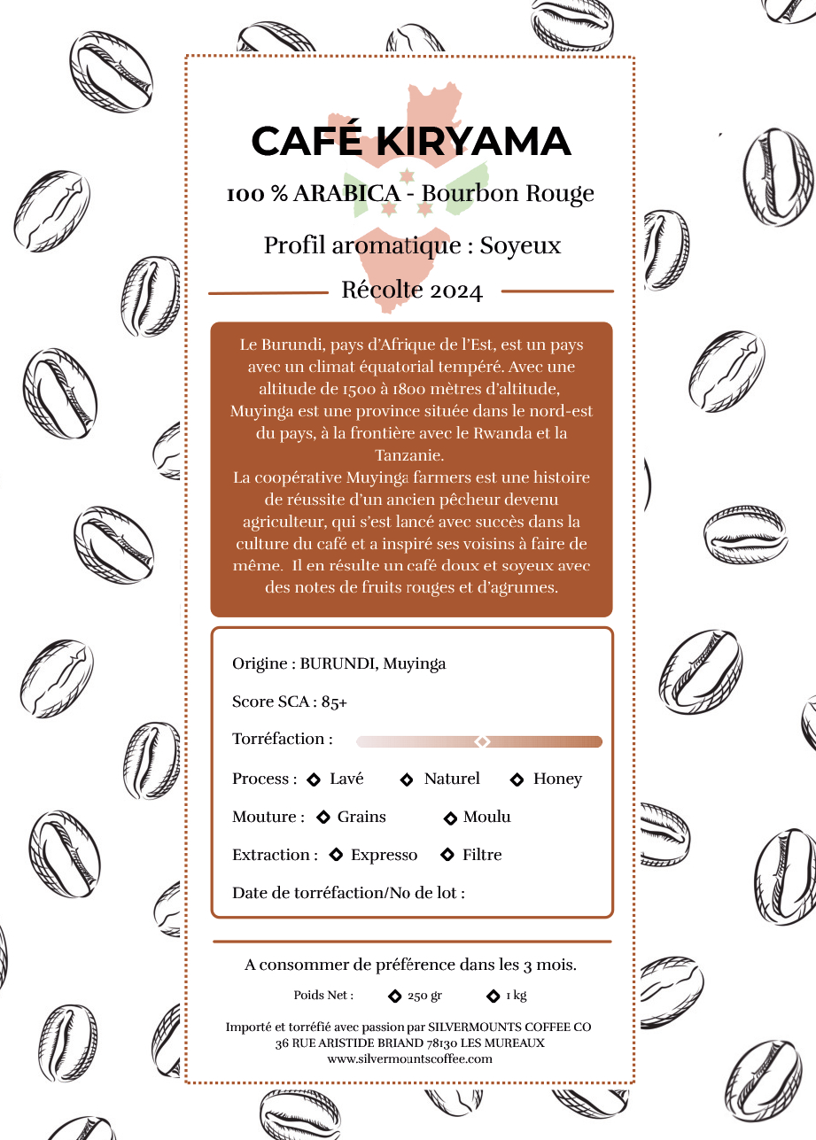 Principalement issu de variétés Bourbon, le café Kiryama est reconnu pour son profil délicat et harmonieux. En tasse, les lots issus de Kiryama sont généralement caractérisés par une acidité douce, une belle clarté aromatique et des notes fruitées pouvant évoquer les agrumes ou les fruits rouges, avec un corps soyeux.